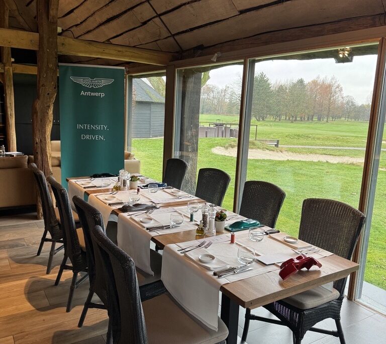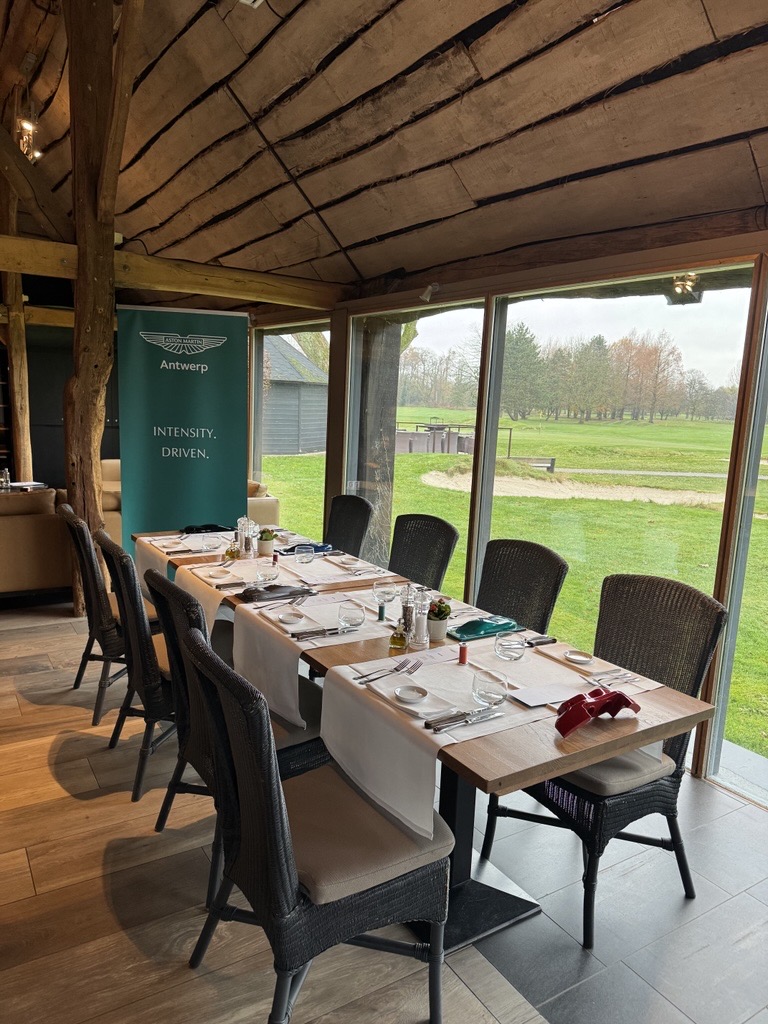 De dag vond plaats in de elegante omgeving van Ternesse Golf Club, waar we genoten van een meer-gangenlunch met zicht op de uitgestrekte golfbaan. Deze locatie bood een rustgevend en exclusief kader dat perfect aansloot bij de uitstraling van Aston Martin.